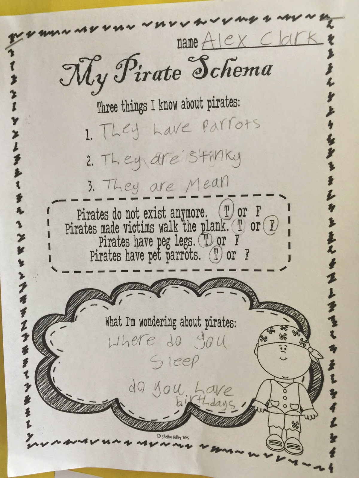 Yo, ho, yo, ho, a pirate's life for me! The landlubbers then had to batten down the hatches and sail through a pirate narrative writing. Of course, bein' a good cap'n and all, I gave them a map to help them plan for their writing. We worked a lot on a great story starter and using transitional words.